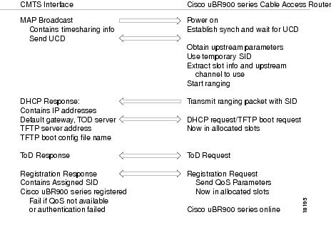 When connected and first powered on, the Cisco uBR925 cable access router performs the following DOCSIS-mandated procedure for automatic installation and configuration: